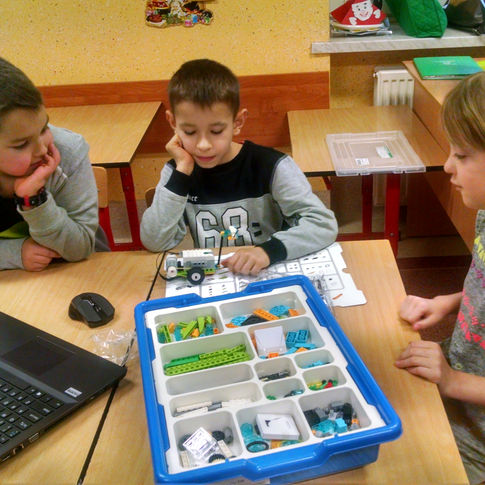 Zajęcia koła informatycznego z elementami robotyki dla klas IV-V i VI-VII odbywają się dwa razy w tygodniu, a ich głównym zadaniem jest kształtowanie umiejętności samodzielnego rozwiązywania problemów, ujawnianie zainteresowań i kształtowanie uzdolnień uczniów w dziedzinie informatyki. Na zajęciach wykorzystywane są zestawy klocków Lego Mindstorm EV3 oraz laptopy z niezbędnym oprogamowaniem zakupione w ramach projektu „Praktyczny TIK”. Uczniowie z zangażowaniem realizują tematykę zajęć i chętnie podejmują nowe wyzwania.